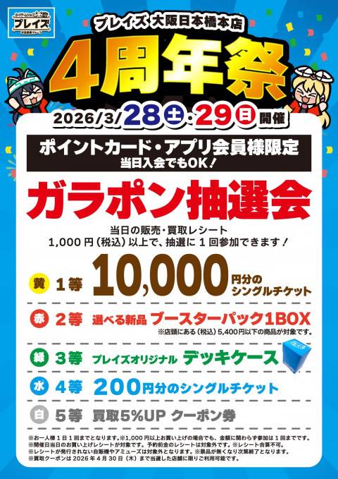 おかげ様でプレイズ 大阪日本橋本店は、4周年を迎えることができました。